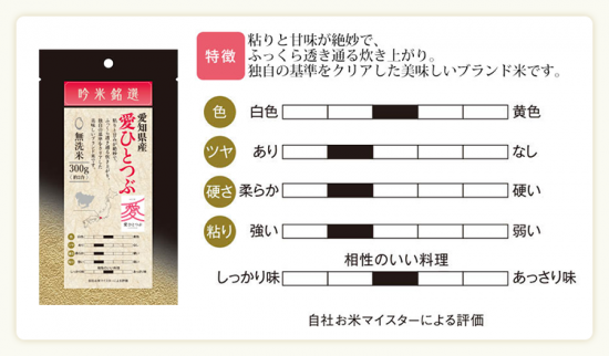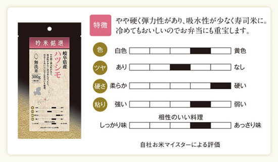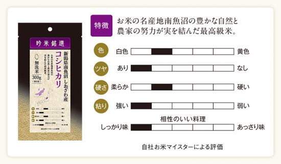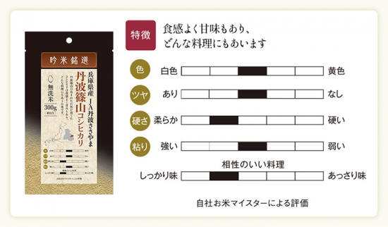 各種単一原料米 北海道産、青森県産、宮城県産、秋田県産、山形県産、福島県産、栃木県産、新潟県産、新潟県南魚沼産、富山県黒部産、福井県産、岐阜県産、愛知県産、三重県伊賀産、兵庫県丹波篠山産、熊本県産
